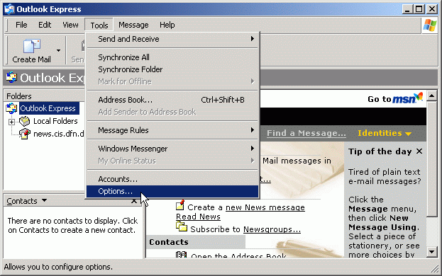 Start the news reader of Outlook Express with Set up a Newsgroups account.